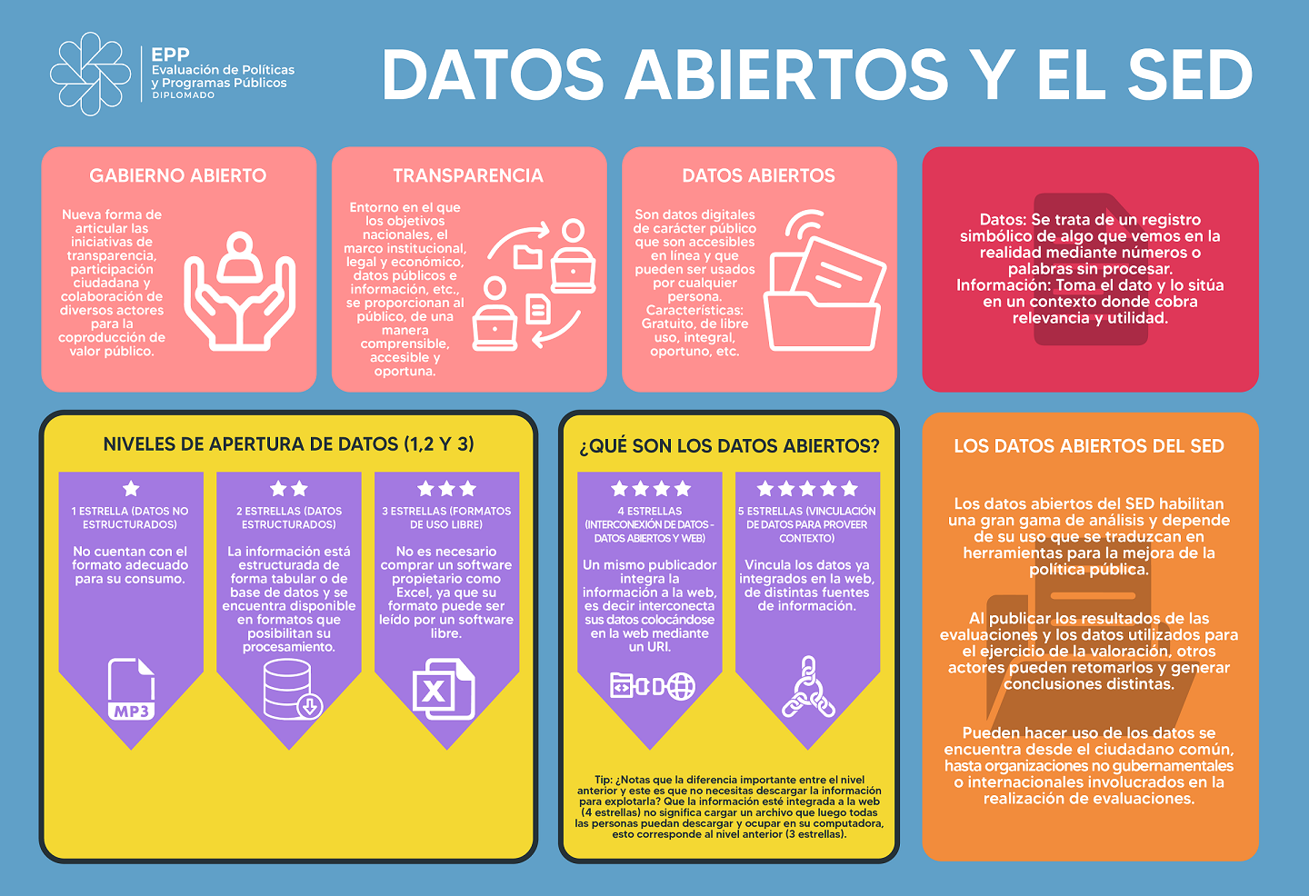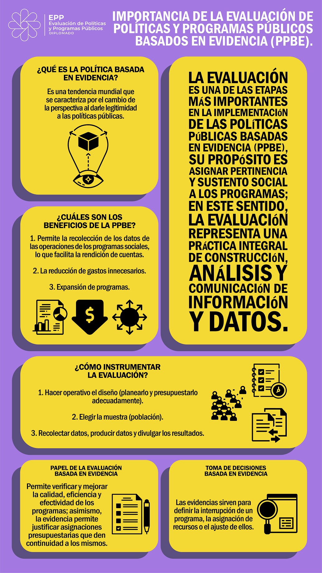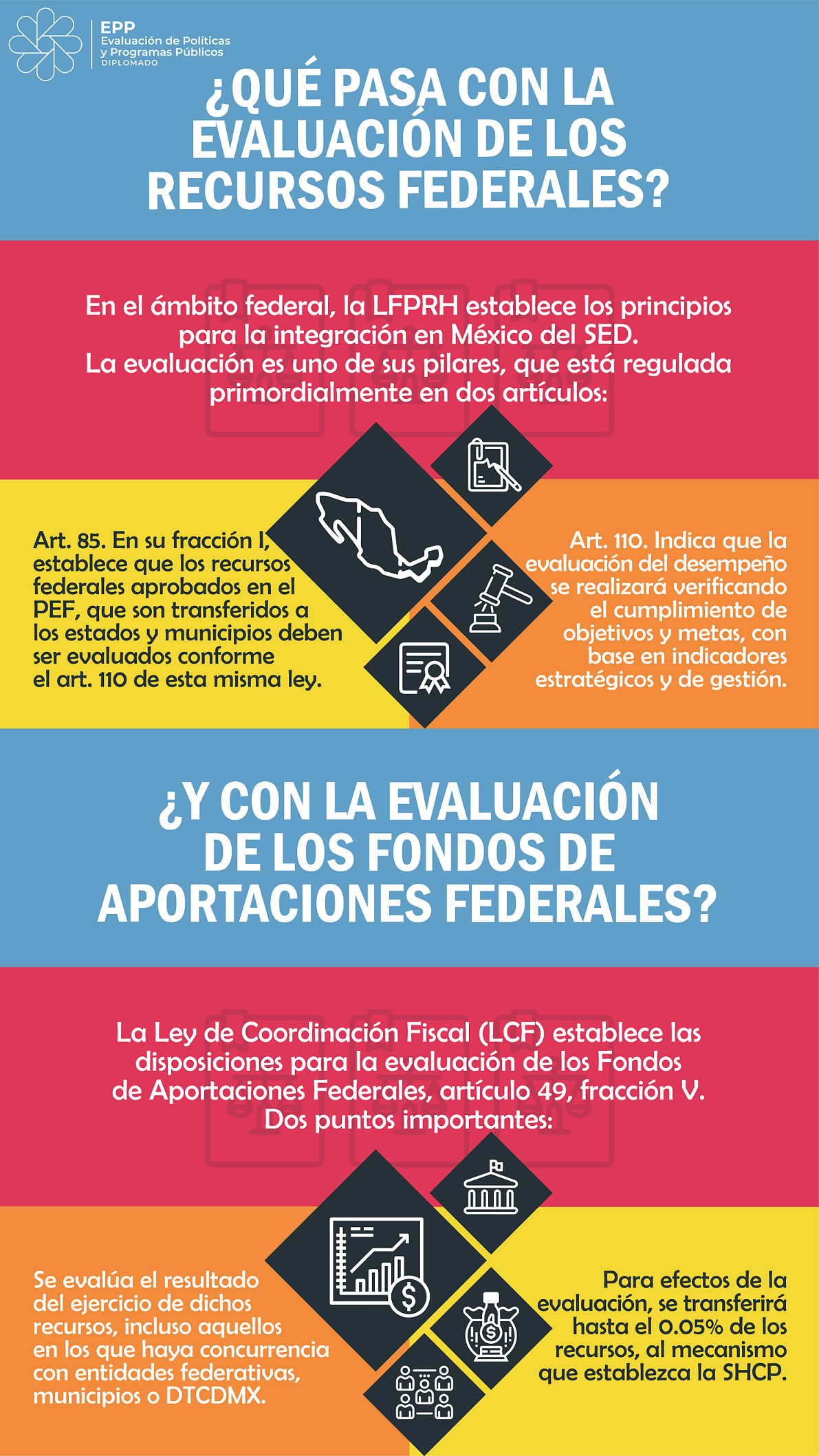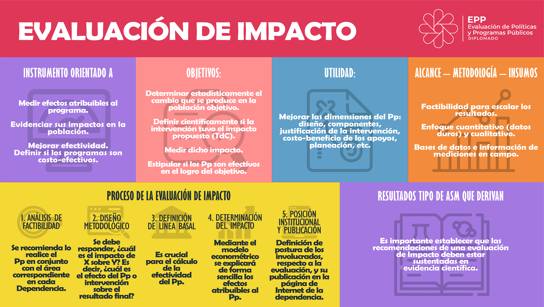 Infografías del diplomado Evaluación de Políticas y Programas Públicos 2023 - UED-SHCP