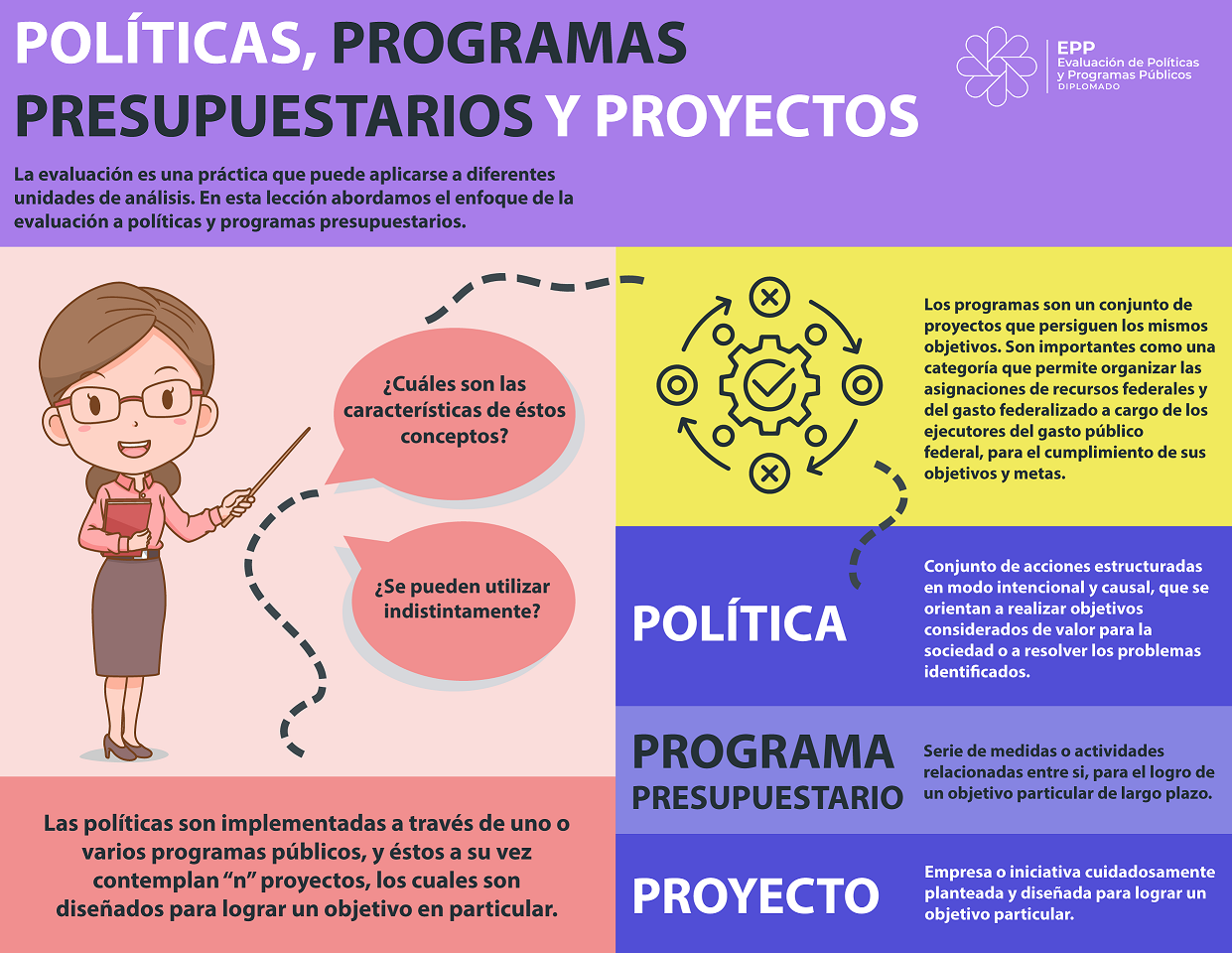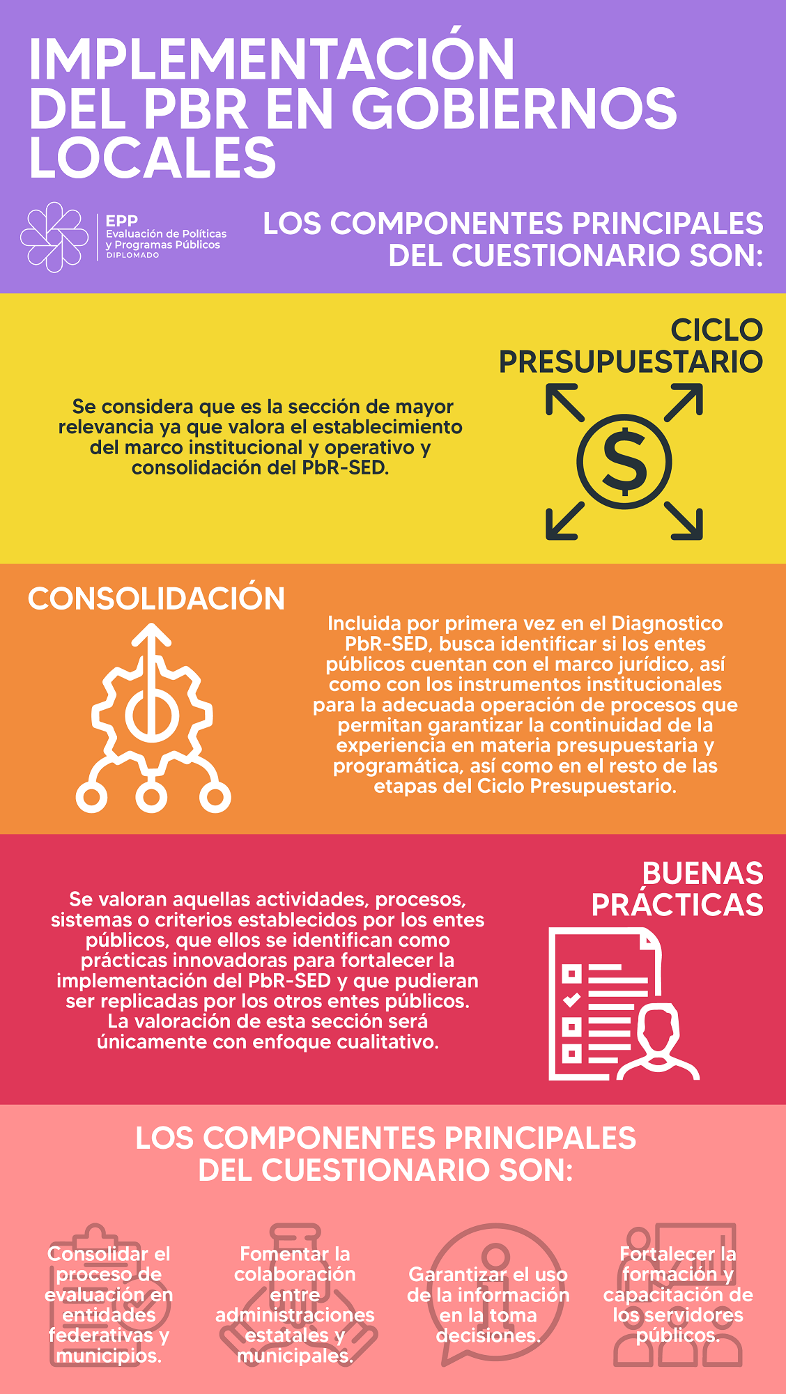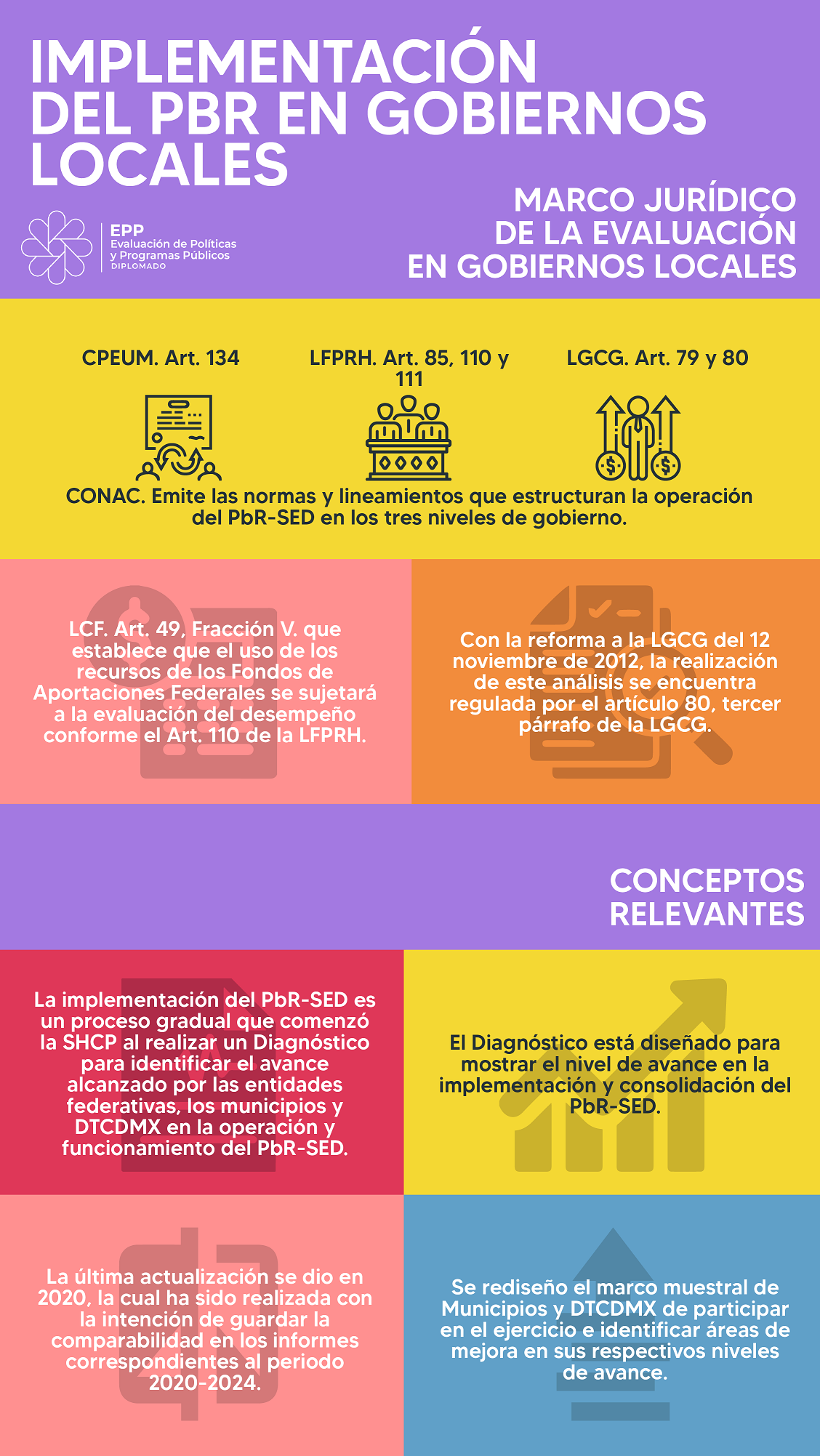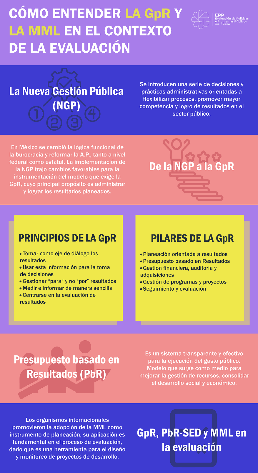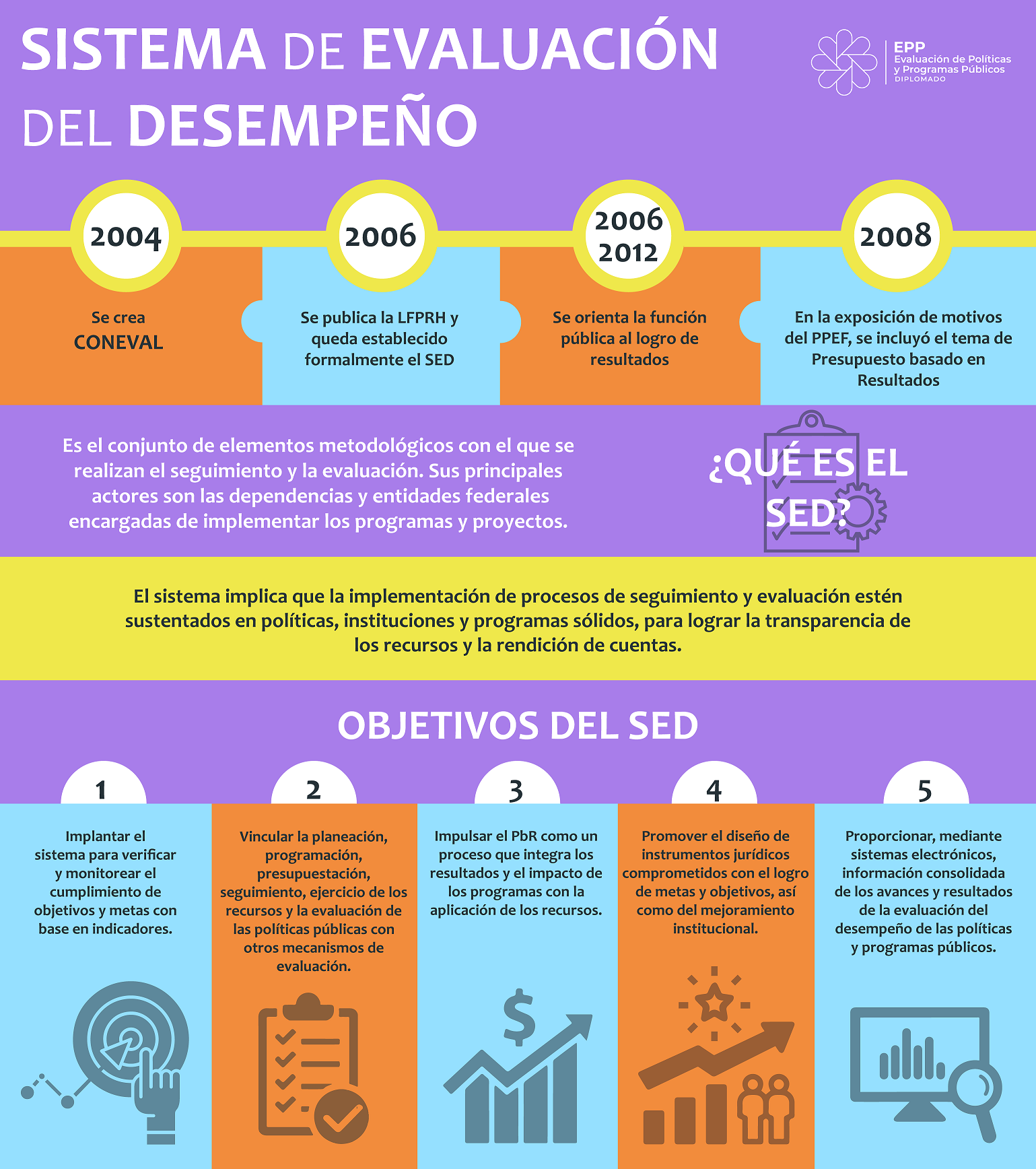 Infografías del diplomado Evaluación de Políticas y Programas Públicos 2023 - UED-SHCP
